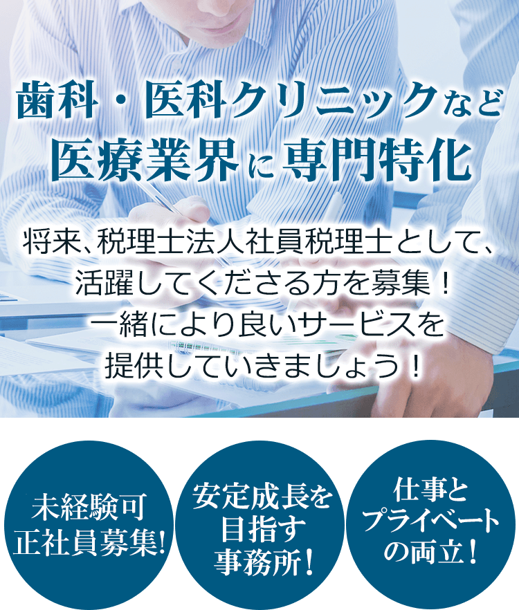 お客様との窓口は全て税理士が担当しており、デスクワークが主な業務のため、外勤が一切ありません。